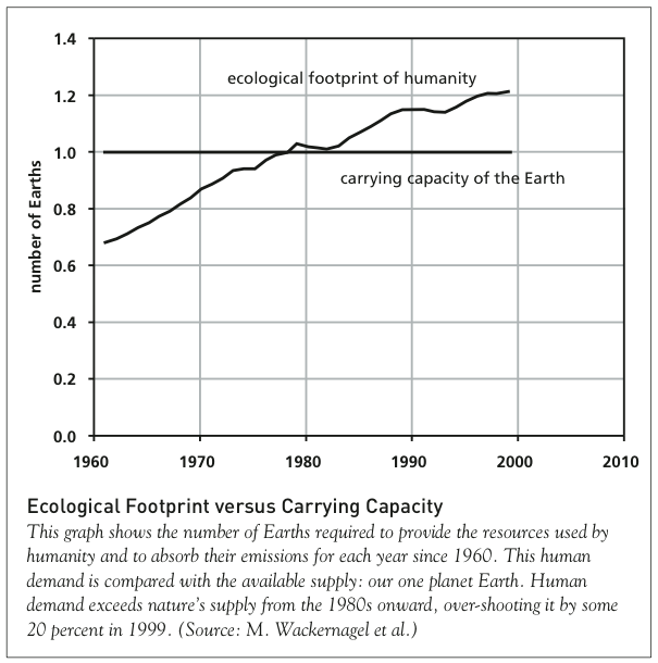 These are symptoms of a world in overshoot, where we are drawing on the world’s resources faster than they can be restored, and we are releasing wastes and pollutants faster than the Earth can absorb them or render them harmless. They are leading us toward global environ- mental and economic collapse—but there may still be time to address these problems and soften their impact.
